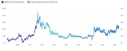 Dieser ETF repliziert den Spotpreis von Silber, basierend auf dem LBMA Silver PR US Cents Index. Wie der iShares ETF hat er USD als Basiswährung und keine Währungsabsicherung. Er ist ebenfalls in Irland domiziliert, und der Verwahrer des Silbers ist JPMorgan.