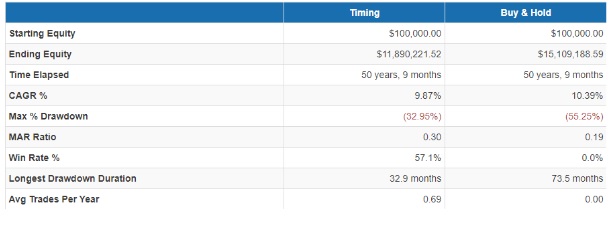 In der folgenden Tabelle sind die Statistiken aufgeführt, wie sich die Anwendung dieses Systems auf den S&P 500 seit 1973 bis heute ausgewirkt hätte: