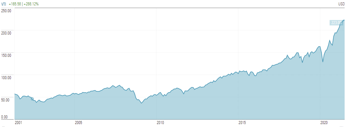 | Vanguard Total Stock Market ETF | 2,80 % | 0,06 % | 20 | VTI | |||||