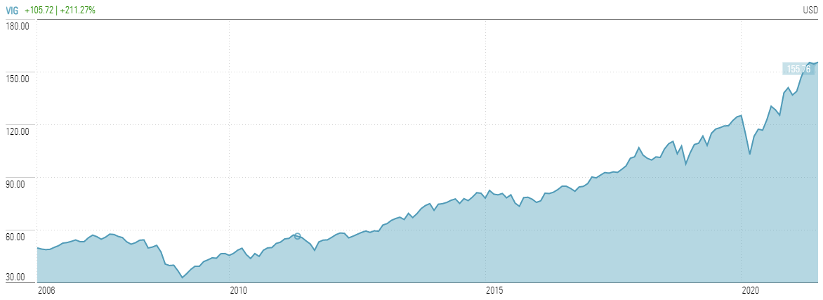 Der Vanguard Dividend Appreciation ETF investiert in Unternehmen, die seit mindestens 10 aufeinanderfolgenden Jahren ein Dividendenwachstum aufweisen können.