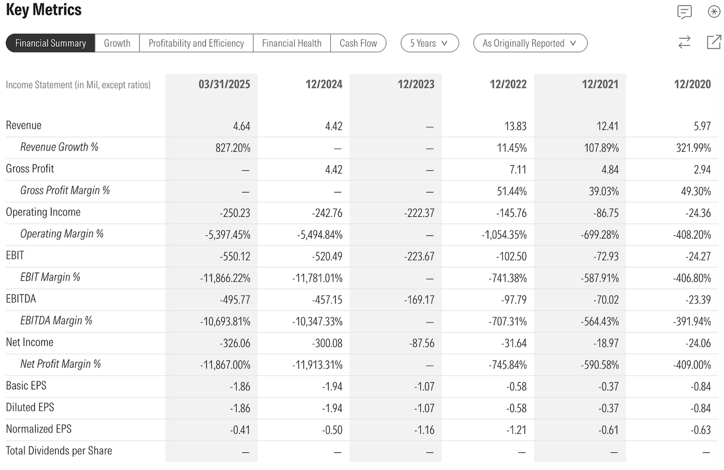 Aufgrund hoher Verschuldung und Bitcoin-Investitionen sind Gewinn und Free Cash Flow negativ, allerdings hat die Firma mehr Vermögenswerte als Verbindlichkeiten.