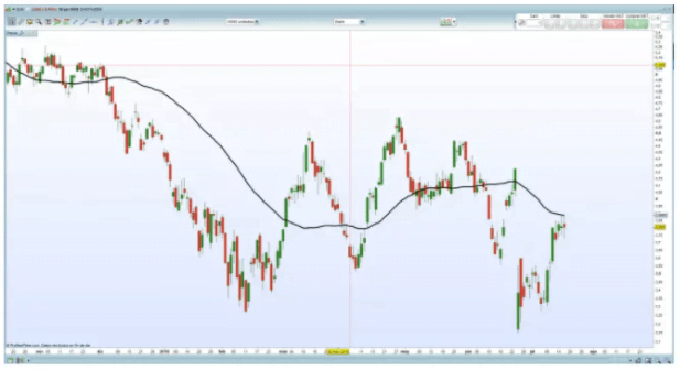 Beispiel: ein Chart von Banco Santander mit einem einfachen gleitenden Durchschnitt von 50.