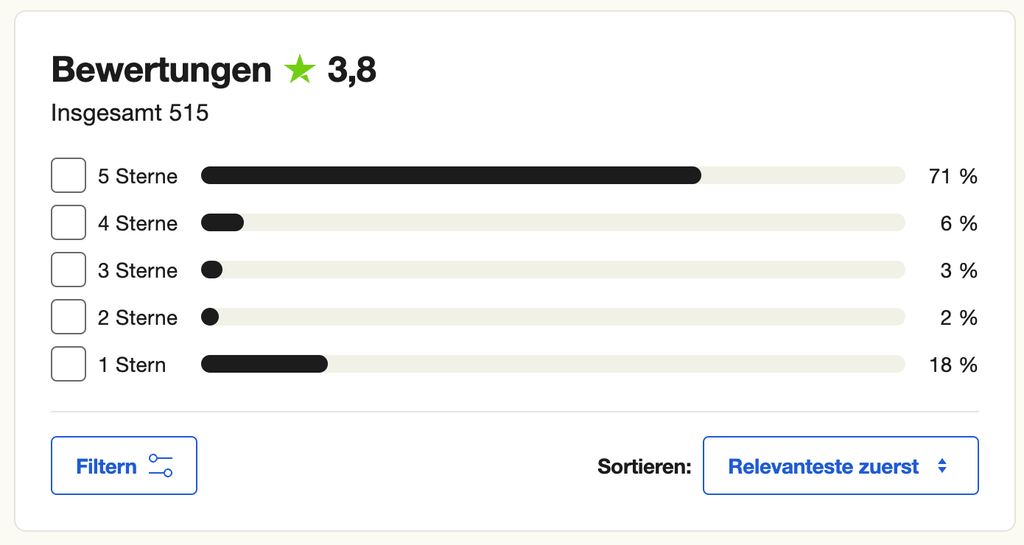 Zum Beispiel wird der Broker von den Nutzern von Trustpilot mit einer durchschnittlichen Bewertung von 3,8 von 5 Sternen und mehr als 500 Kommentaren gut bewertet.