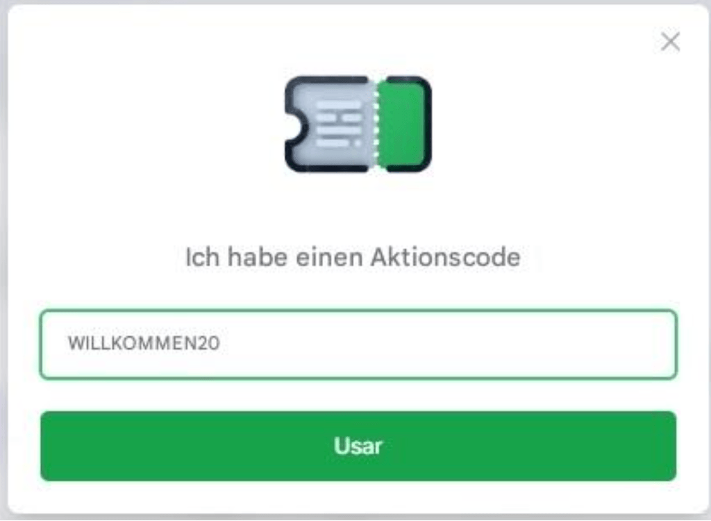 Geben Sie den Code „WELCOME20“ ein und klicken Sie auf „Einlösen“.
