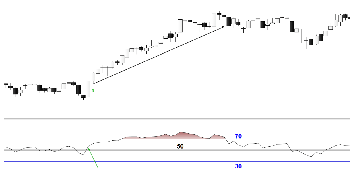 Wenn der RSI keine Signale oder Hinweise zum Kauf oder Verkauf des Wertpapiers liefert, interpretieren Sie ihn als Momentum-Indikator: