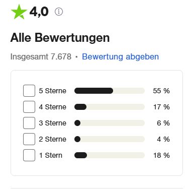 Wir sehen also eine große Übereinstimmung mit Trustpilot, denn bei insgesamt mehr als 6.171 Meinungen erhält der britische Broker eine Durchschnittsnote von 4,0 von 5, genau wie bei Trustpillot.