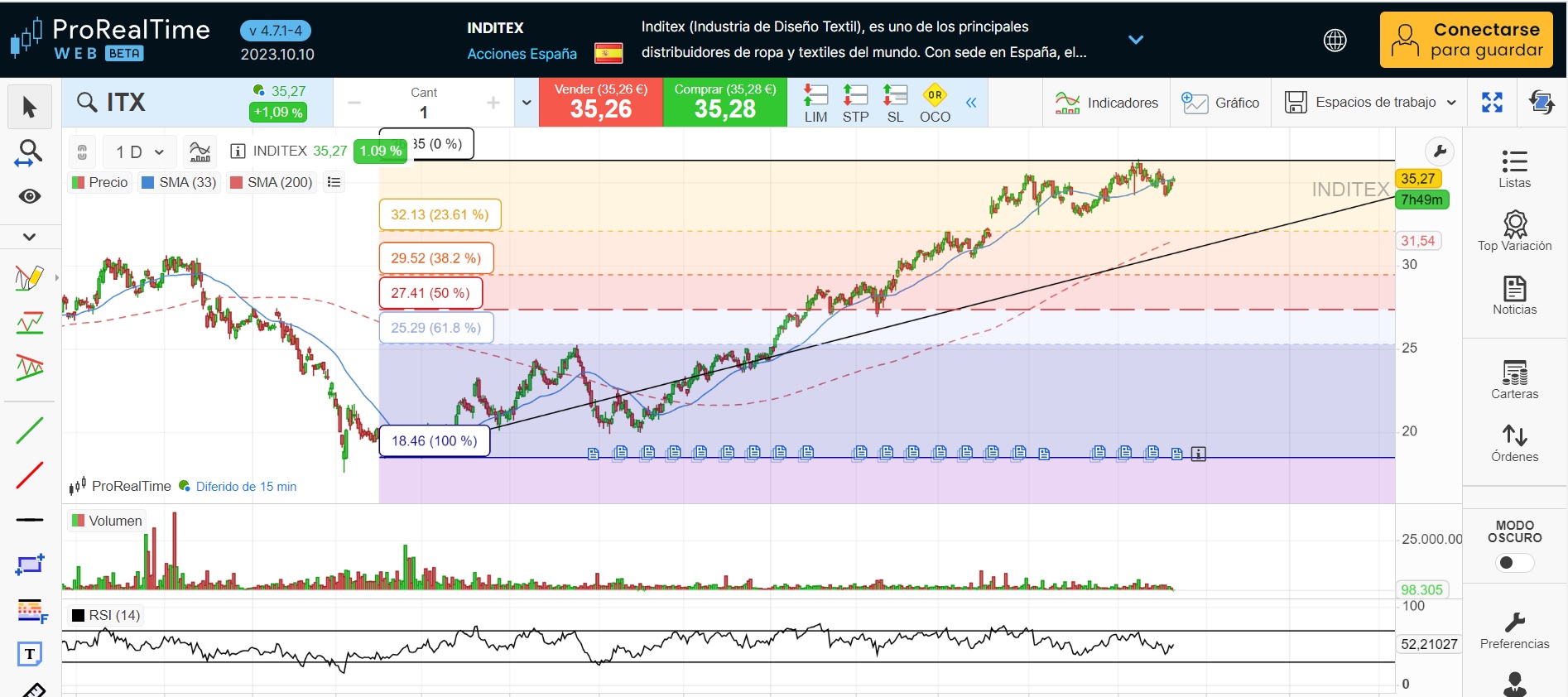 ProRealTime ist eine Handelsplattform mit unzähligen Funktionen und Tools für die technische Analyse. Mit anderen Worten, es ist die Schnittstelle, auf der Sie Ihre Investitionsanalysen durchführen, Charts überprüfen und auch Transaktionen am Aktienmarkt tätigen können. Und mit dem neuen WEB-Plattform-Konto können Sie dies völlig kostenlos tun, ohne sich überhaupt registrieren zu müssen.