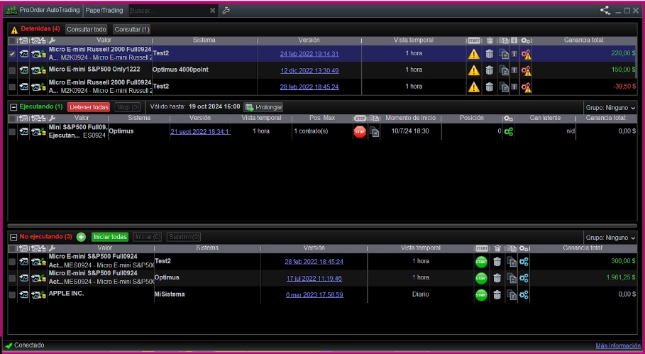 Wie Sie sehen können, sind die operativen Möglichkeiten, die Ihnen in diesem kostenpflichtigen und bereits registrierten Konto zur Verfügung stehen, in Bezug auf die Professionalisierung wirklich beeindruckend.