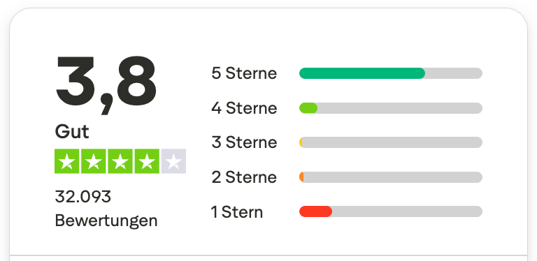 Bei Trade Republic sieht es ähnlich aus. Sie werden mit 3,8 Sternen bei Trustpilot bewertet. Wenn wir uns jedoch die schlechten Bewertungen durchlesen, beziehen diese sich nicht auf Trade Republic als Plattform, sondern hauptsächlich auf den Kundenservice.