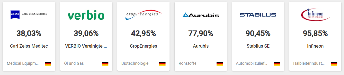 Fünf der Unternehmen mit dem niedrigsten Verschuldungsgrad in Deutschland sind: