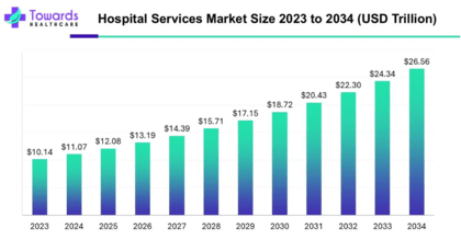 Der Krankenhausmarkt allein übersteigt bereits 11 Billionen USD, und die Gesundheitsdienste insgesamt werden jährlich um 8 % wachsen (laut Towards Healthcare) dank der Digitalisierung und der Ausweitung der Abdeckung in Asien-Pazifik und Afrika.